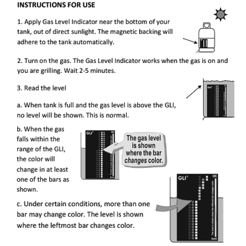 - Medium to Low Gas Level: If the gas level falls within the range of the GLI, at least one bar will change color